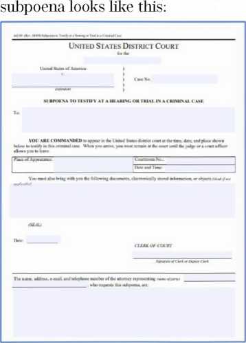A federal subpoena may order a witness to produce "any books, papers, documents, data, or other objects." Fed. R. Crim. P. 17 (c)(1). The subpoena must state the court's name and the title of the proceeding. include the seal of the court, and command the witness to attend and testify when the subpoena specifies. Fed. R. Crim. P. 17 (a). The clerk must issue a blank subpoena—signed and sealed—to the party' requesting it. and that party must fill in the blanks before it is served. Fed. R. Crim. P. 17 (a). A typical